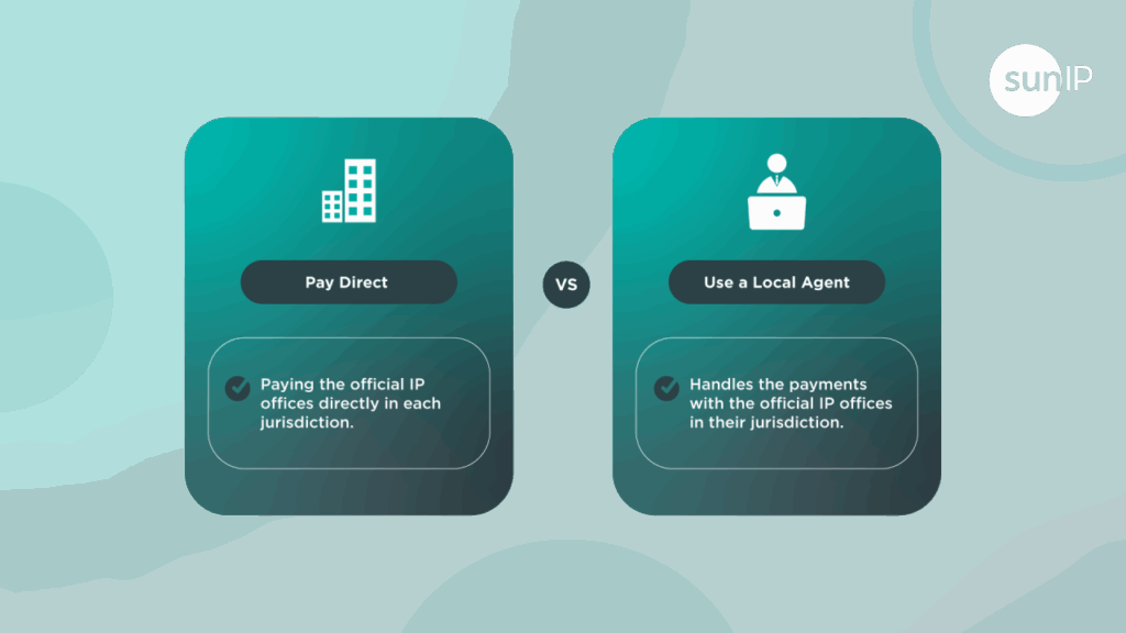 - Paying through a local agent: Using an experienced and reliable local agent who handles the payments with the official IP offices in their jurisdiction.