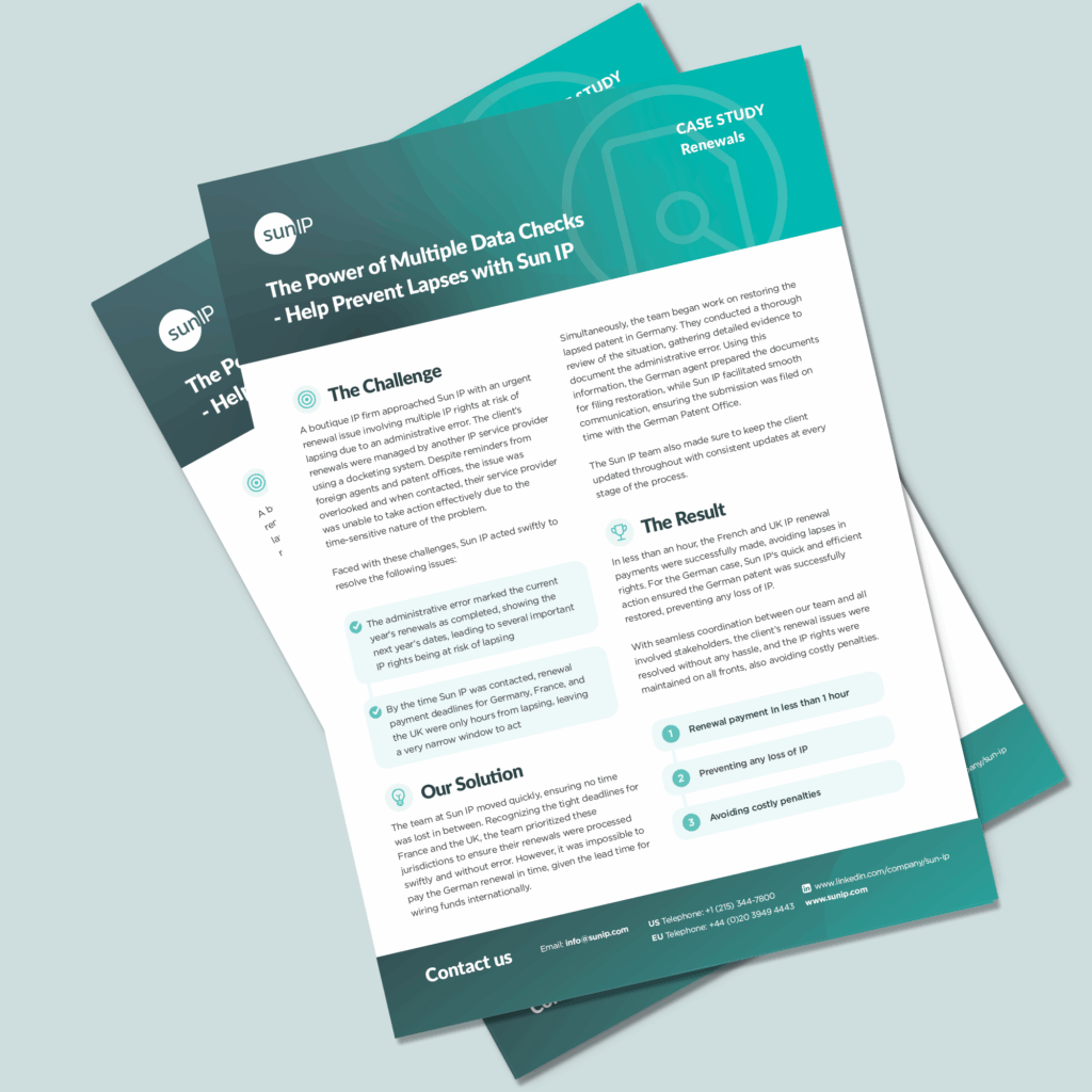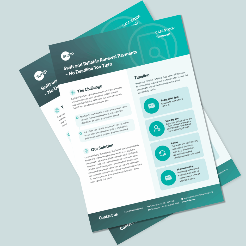 At Sun IP, we understand that renewal payments require both cost-effectiveness and reliability. We take a hybrid approach, paying direct in countries where we know the process is seamless and risk-free. In other jurisdictions, we pay through our expert network of vetted agents to ensure efficiency, accuracy, and security. By handling all decision-making and execution, we ensure that renewal payments are completed on time, and without unnecessary complications. At Sun IP, our priority is always to choose the best route for our clients without any sort of compromise.